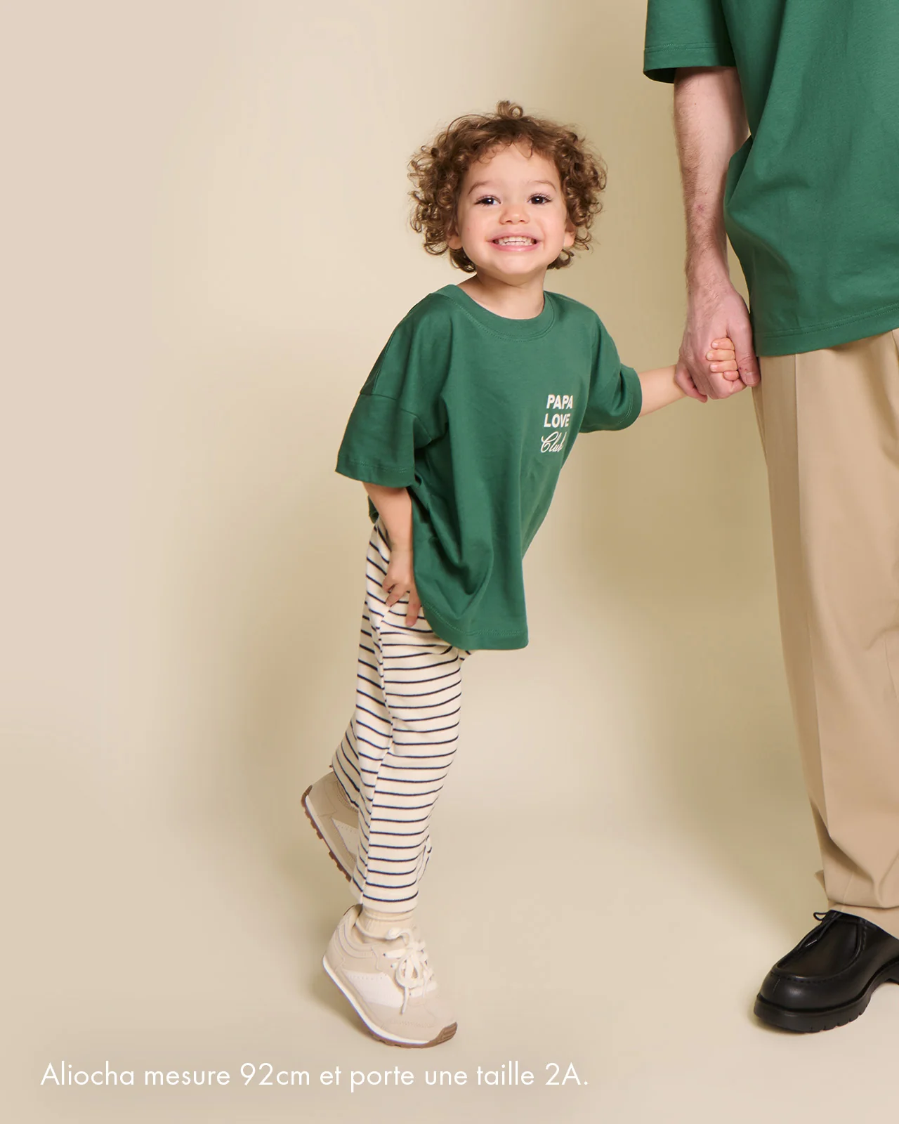– Palou, c’est notre pantalon unisexe, rétro, super cool, pour grandir super libre, grâce à sa taille élastiquée et sa jambe droite