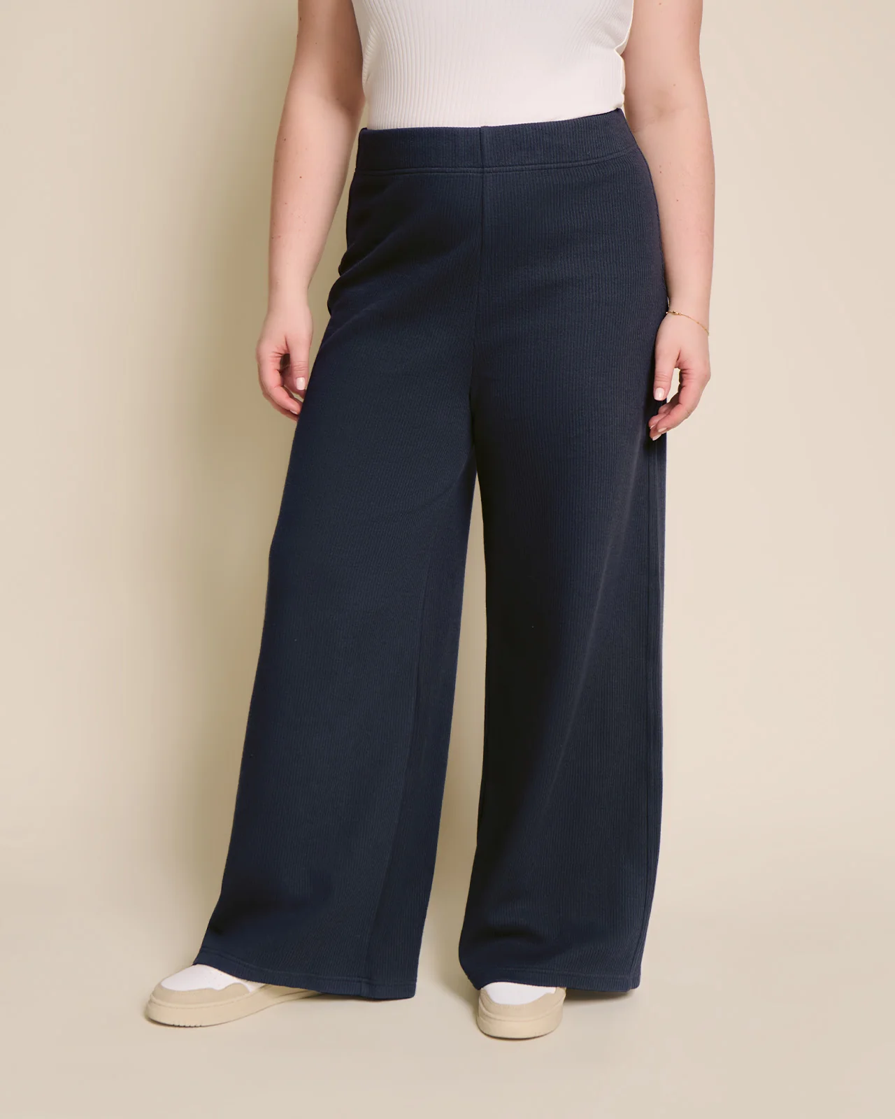 – Pauline, c’est notre coupe de pantalon iconique : taille haute, jambe droite et large. Le pantalon le plus cool et réconfortant de votre vestiaire.