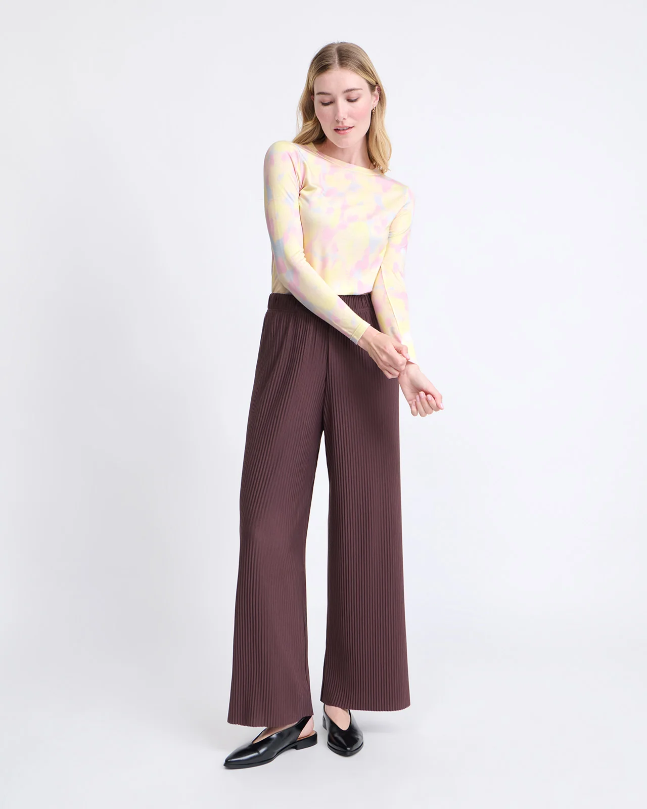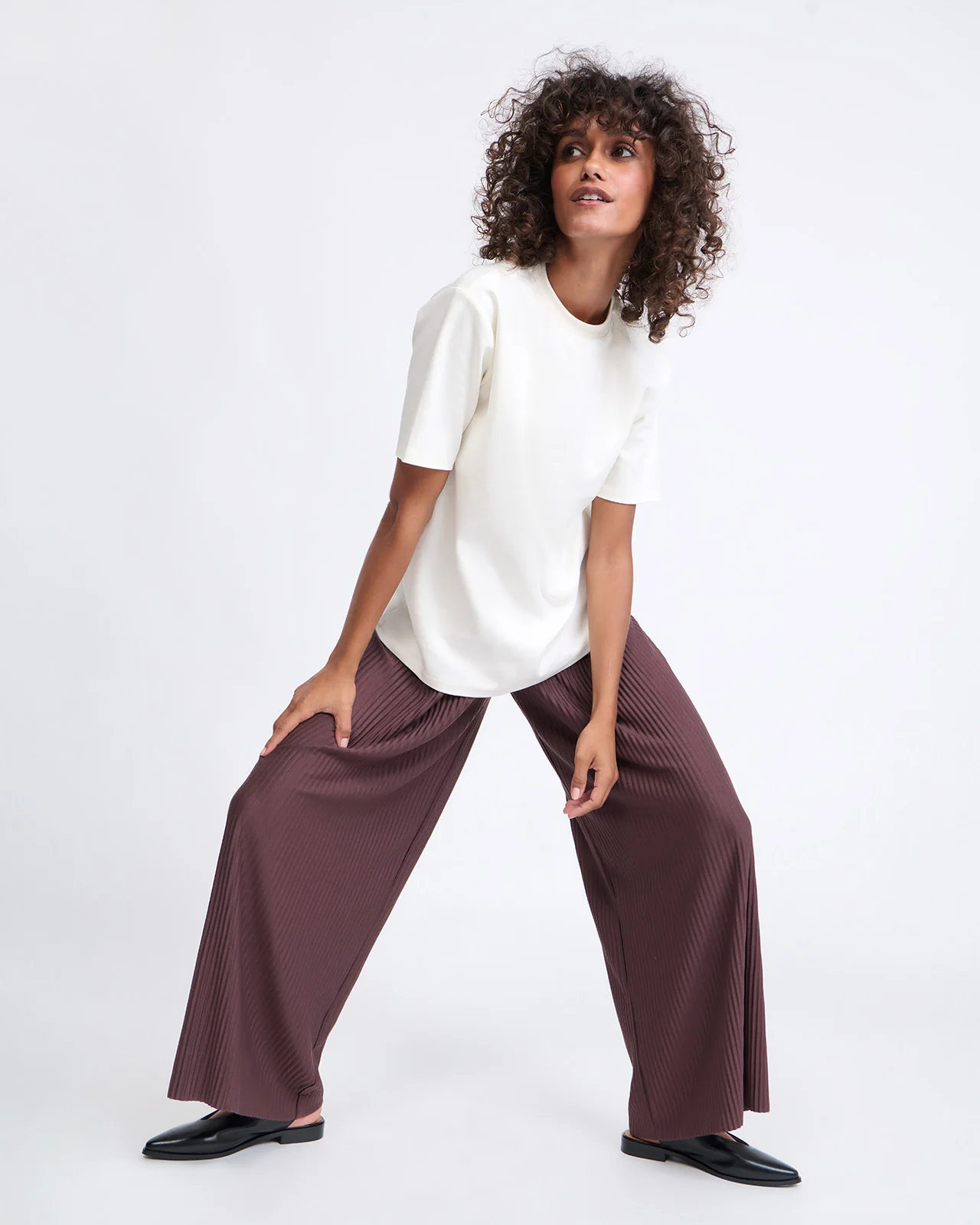 – Pantalon plissé en polyester recyclé, tout doux et confortable
