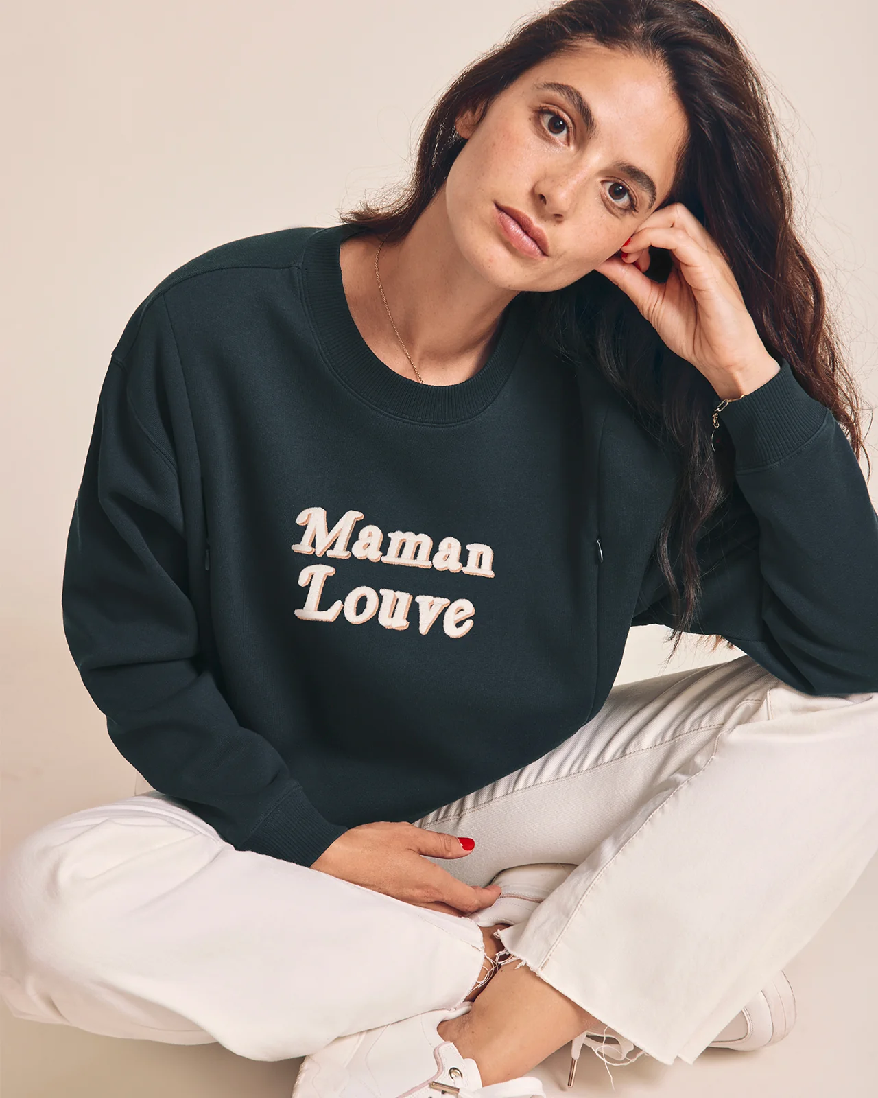 Sweat d’allaitement zippé fabriqué tout près, en coton bio chaud et beau, pour allaiter avec amouuur.