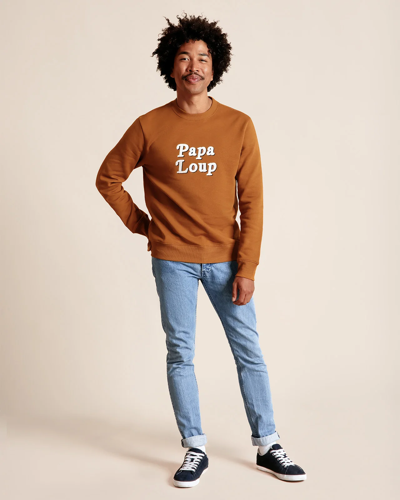 Le sweat Papa loup en coton bio – caramel
