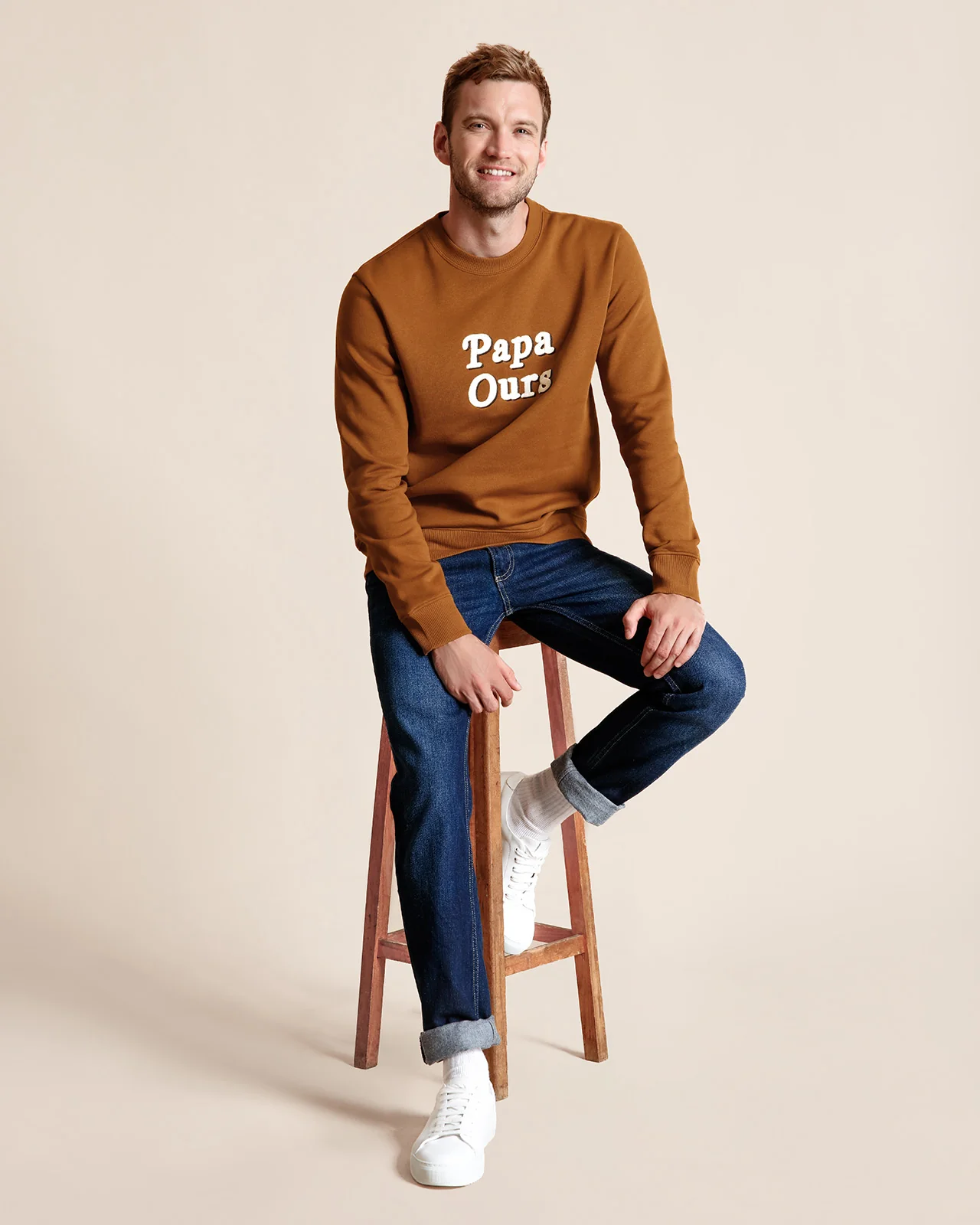 Le sweat Papa ours en coton bio – caramel