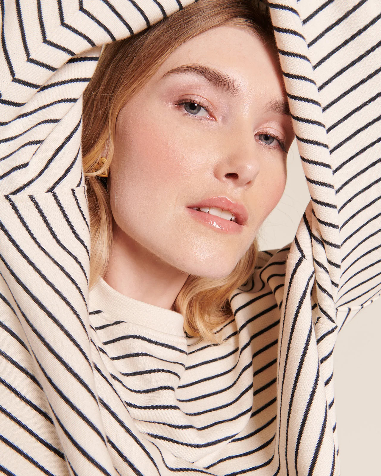 – La rayure Glow, c’est notre molleton non gratté doux, 100% coton bio certifié GOTS, 290 gr/m2 (le grammage parfait pour rayonner tous les jours de l’année)