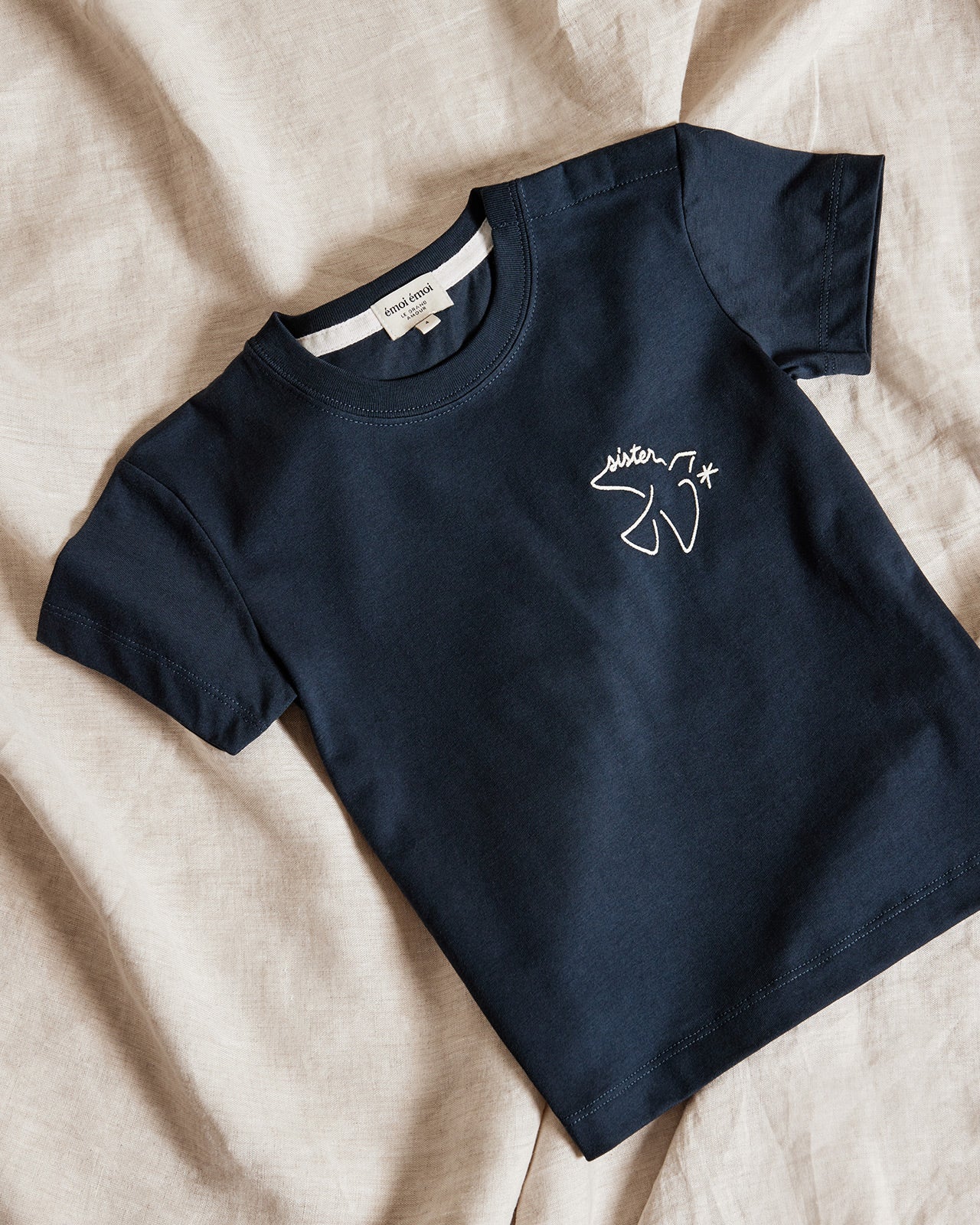 Le t-shirt brodé Sister bird en coton bio – charbon