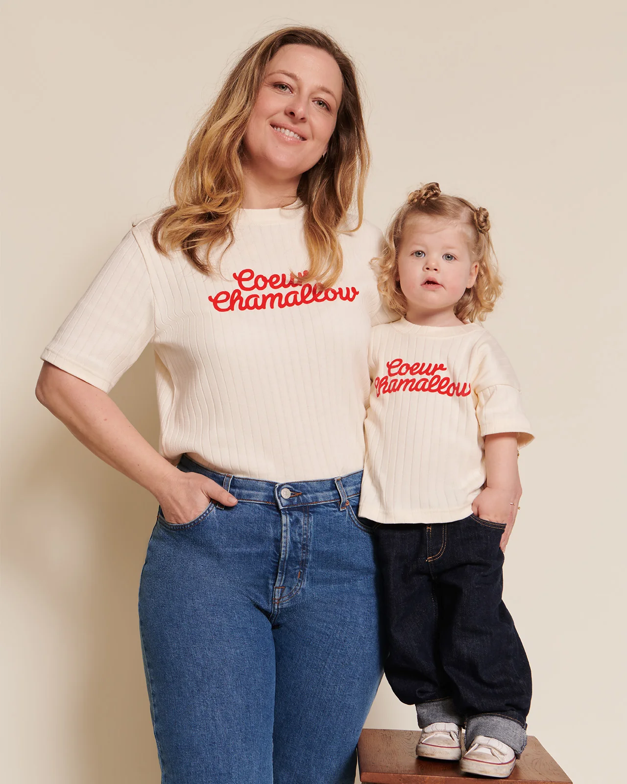Le t-shirt Cœur chamallow enfant en coton bio – crème