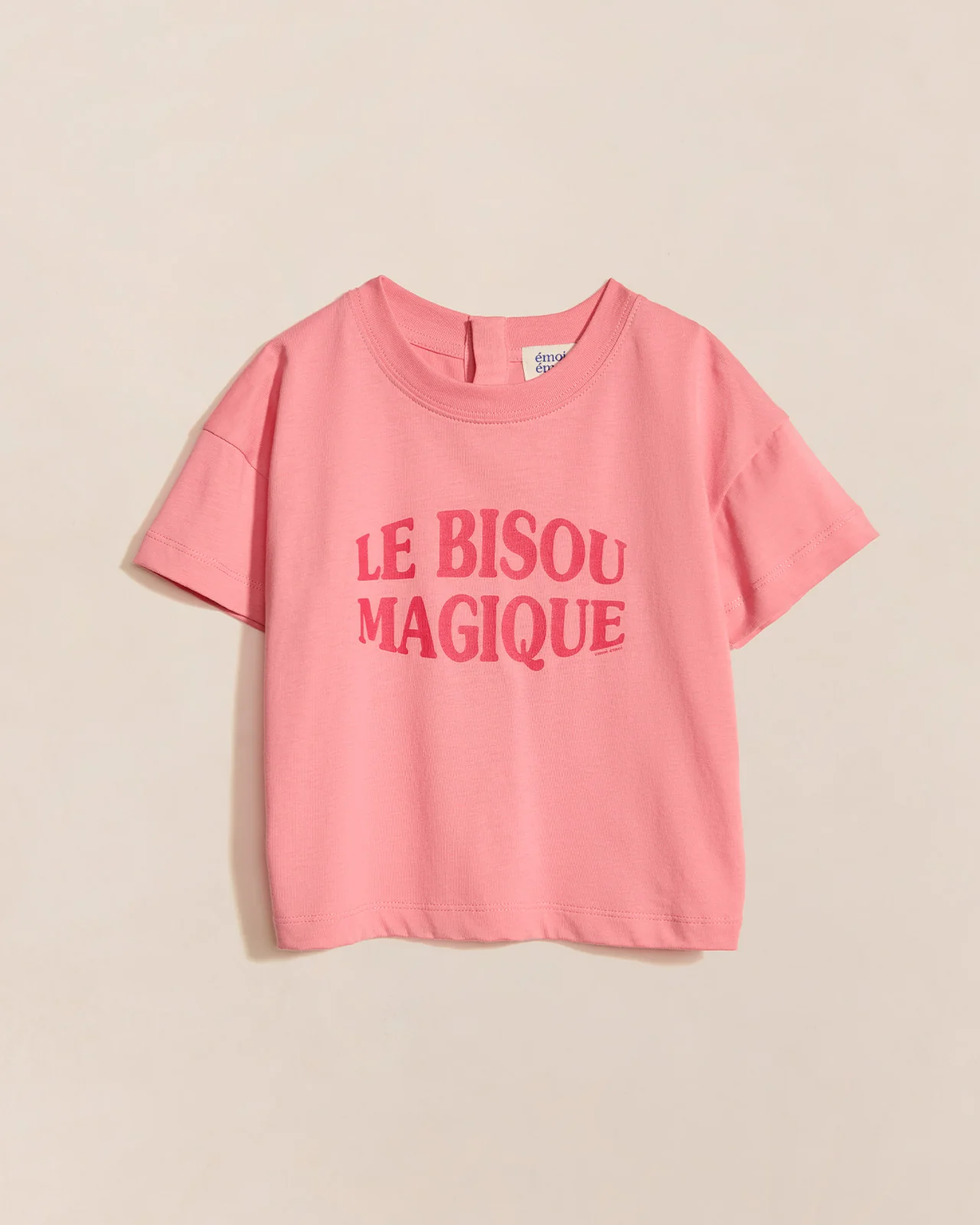 Le t-shirt Le bisou magique enfant en coton bio – framboise
