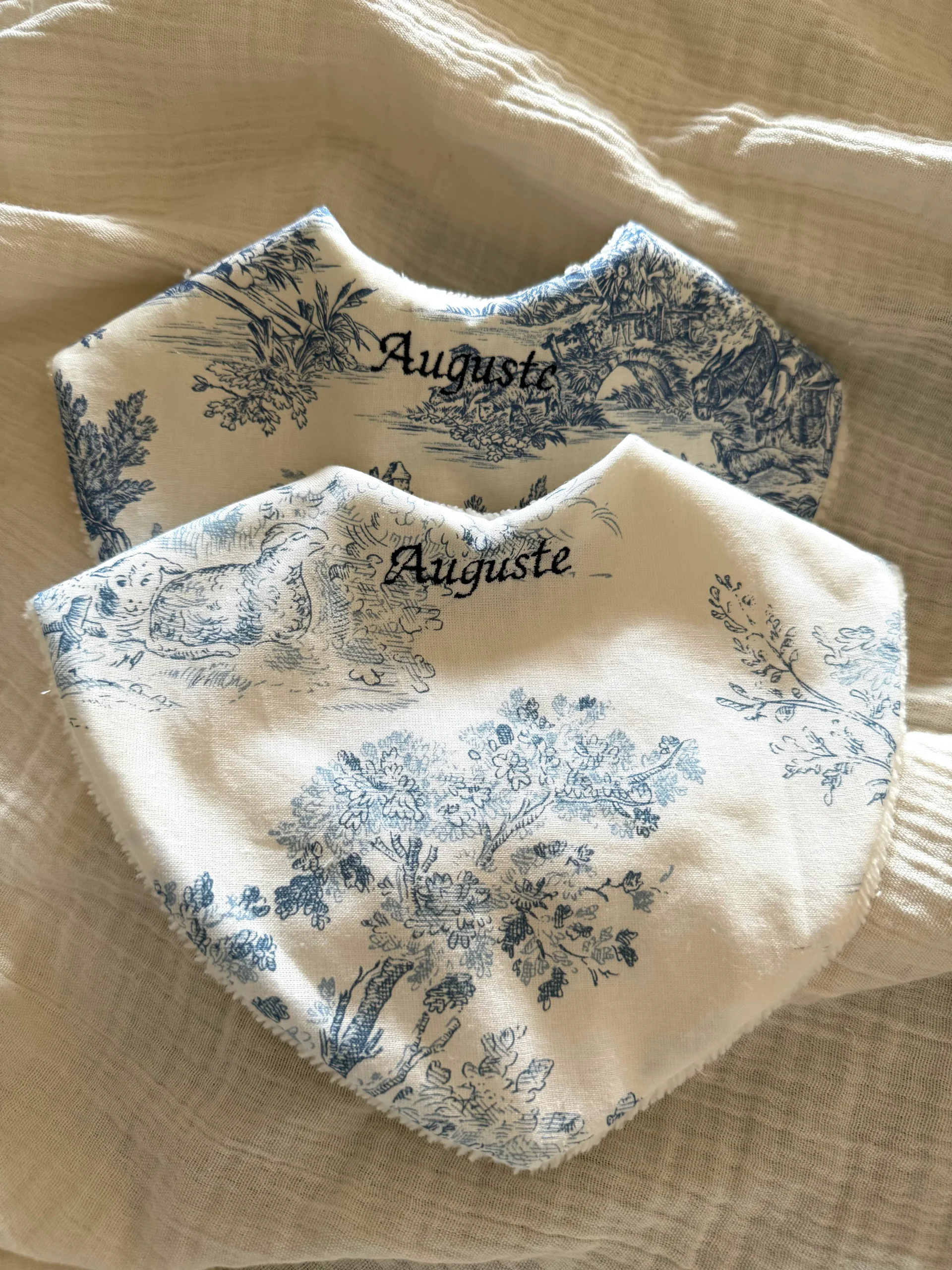 Bavoir bandana idéal pour les biberons de vos petits bébé, et lors de ses repas. Indispensable de sa garde robe, il n’y en a jamais trop. Facile et pratique d’utilisation, ce bavoir est l’accessoire indispensable à posséder. Vous pouvez le personnaliser avec une broderie (la couleur du fils est choisie par nos soins). Vous avez […]