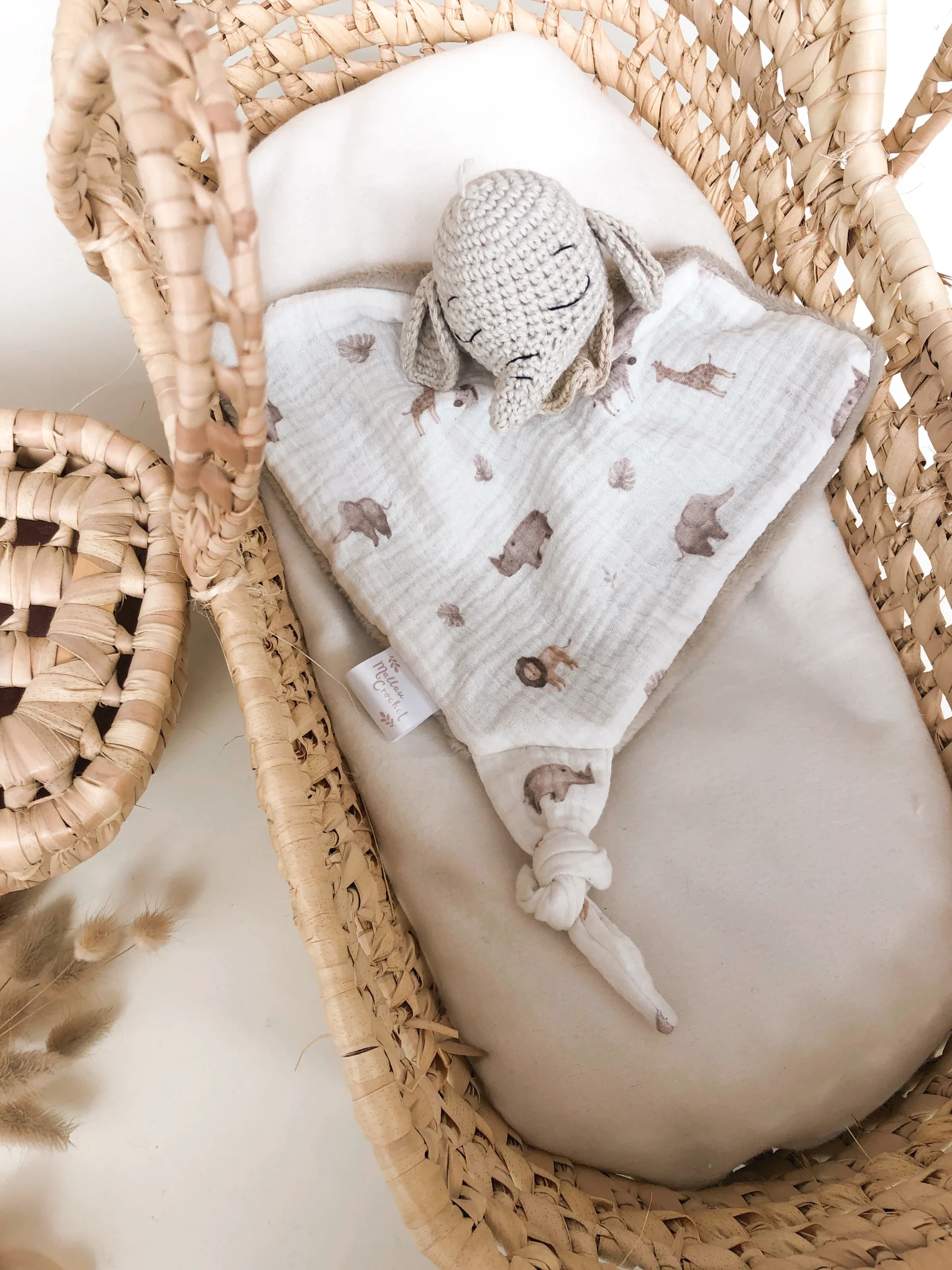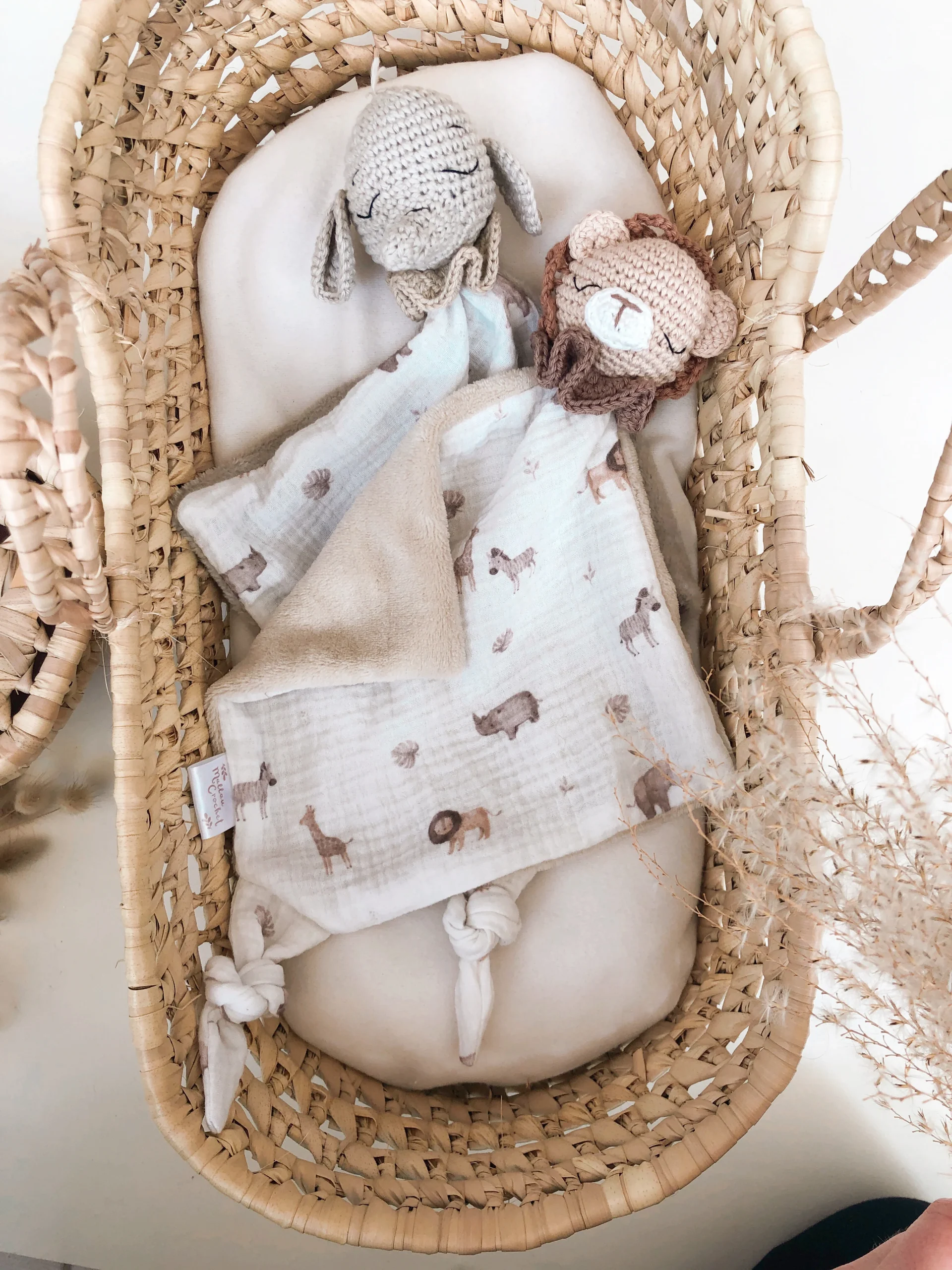 Doudou Safari personnalisé au crochet avec prénom de bébé