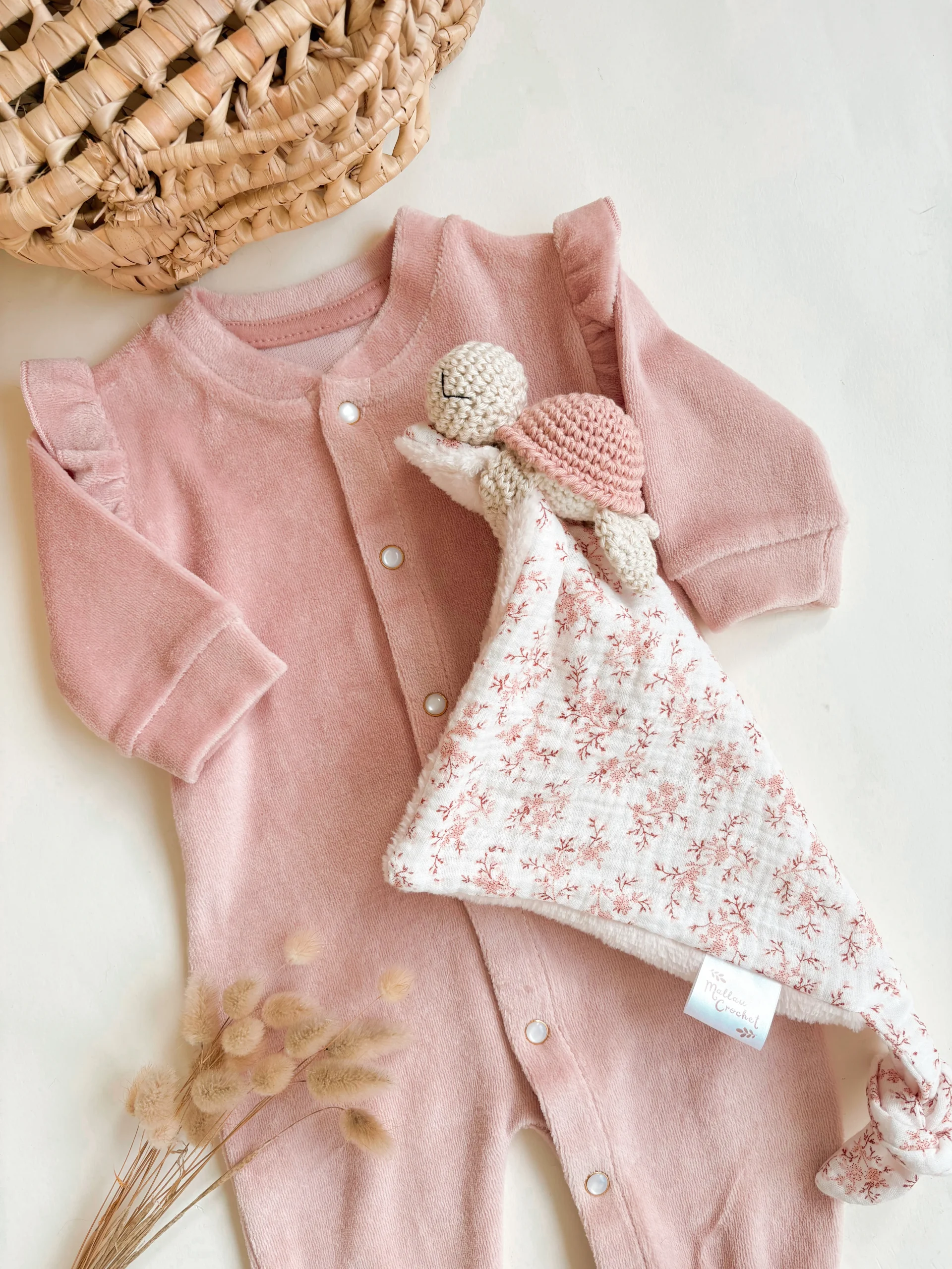 Doudou lange tortue personnalisé au crochet Mignon doudou avec une tortue réalisée à la main au crochet.Bébé adorera papouiller son doudou et mâchouiller le nœud cousu à l’extrémité du doudou.Un doudou tout doux pour bébé grâce au double gaze de coton et son envers en tissu doudou . Les yeux sont brodés sur le visage […]