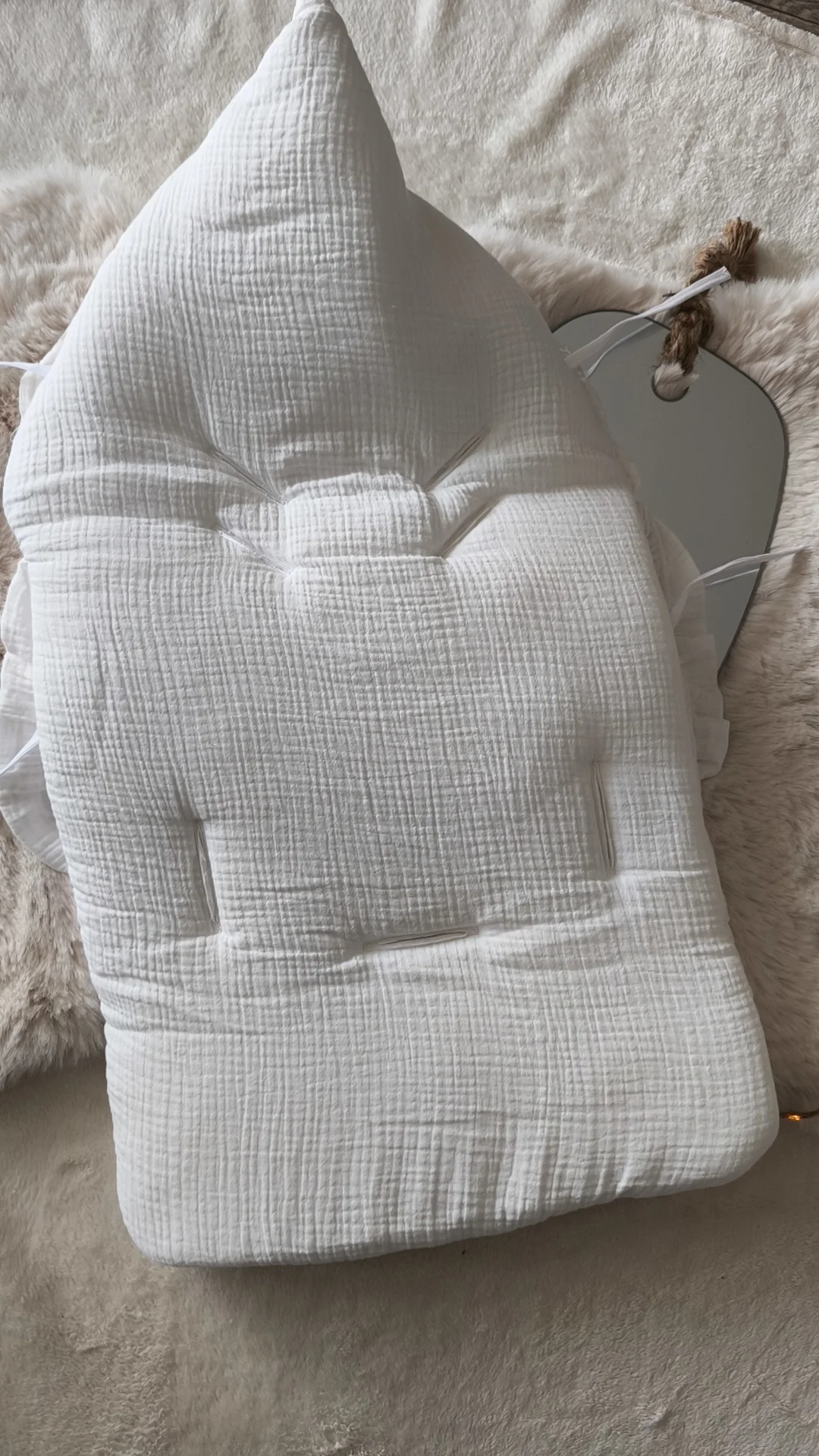 Offrez à votre bébé un cocon douillet avec ce nid d’ange en gaze de coton, doublé d’une polaire chaude. Parfait pour la poussette ou le siège auto, il assure confort et chaleur tout en étant délicat pour la peau sensible de votre tout-petit. Un essentiel mignon et pratique pour les sorties en toute sérénité.