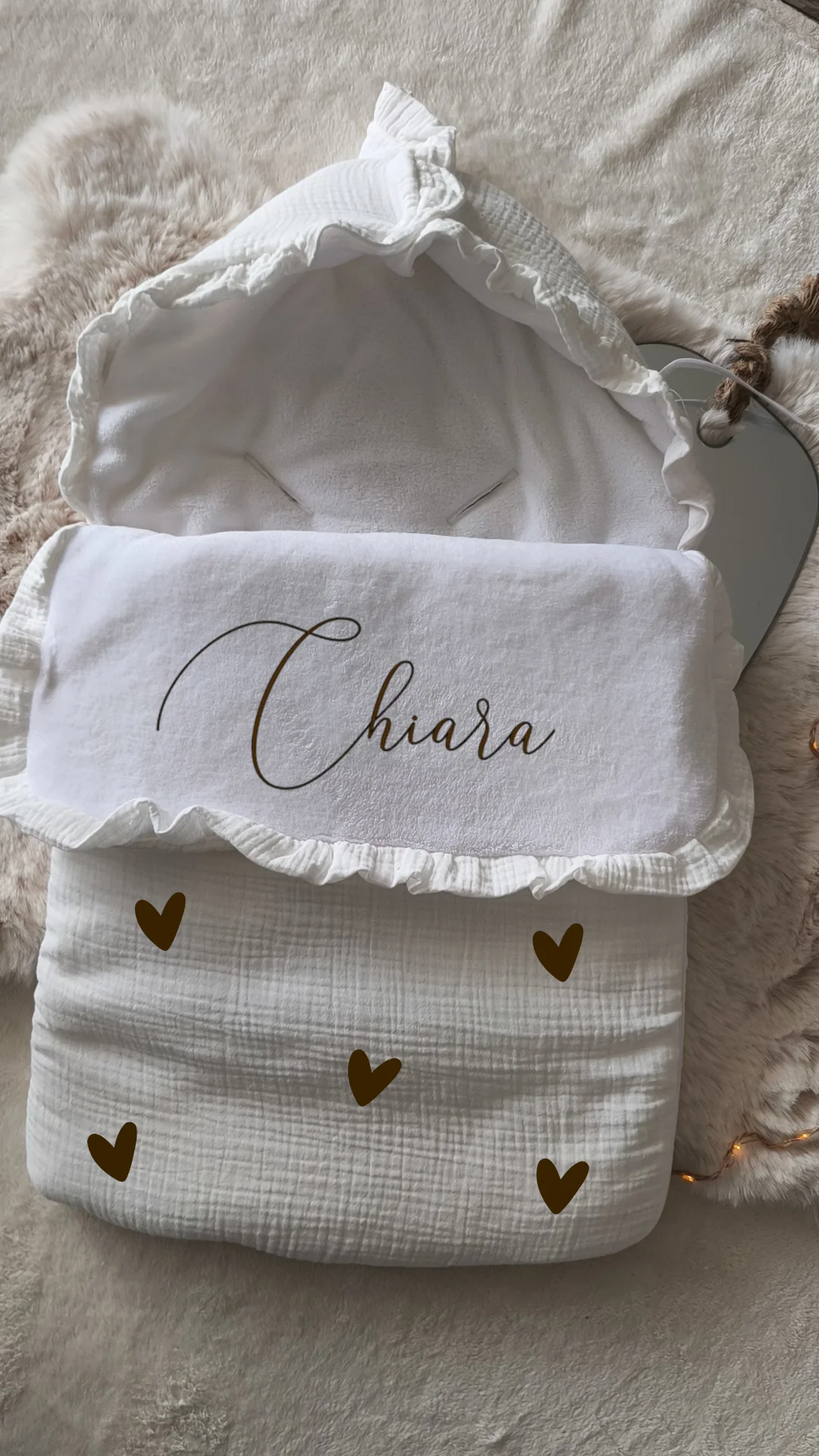 Offrez à votre bébé un cocon douillet avec ce nid d’ange en gaze de coton, doublé d’une polaire chaude. Parfait pour la poussette ou le siège auto, il assure confort et chaleur tout en étant délicat pour la peau sensible de votre tout-petit. Un essentiel mignon et pratique pour les sorties en toute sérénité. Personnalisation […]