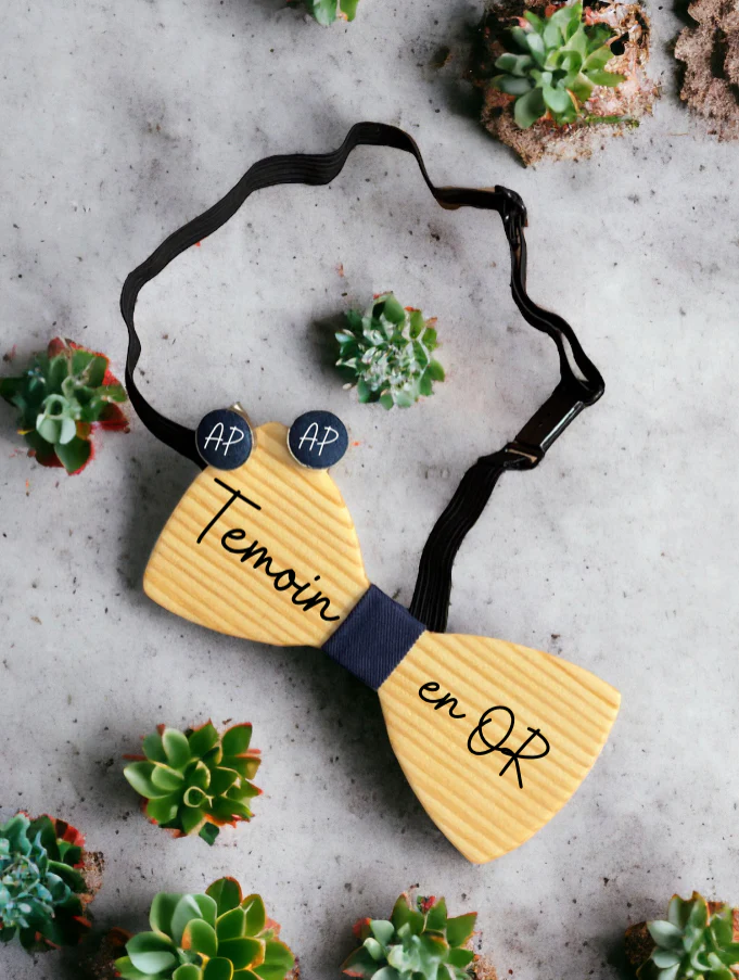 Votre nœud papillon sur mesure en bois est personnalisable. Un cadeau original pour homme, père, mari… idéal pour un mariage champêtre.Chaque nœud est découpé et soigneusement poncé de façon artisanale dans notre atelier.Chaque planche de bois présente des particularités au niveau de ses veines, des irrégularités naturelles qui font que chaque nœud papillon découpé est […]