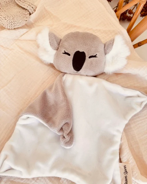 Je vous présente le doudou plat Paola le koala. Sa bouille n’est pas trop mignonne ? Vous pouvez le personnaliser au grés de vos envies pour qu’il devienne le compagnon idéal de bébé. Sélectionnez les tissus en fonction de l’univers dans lequel vous souhaitez l’accueillir.