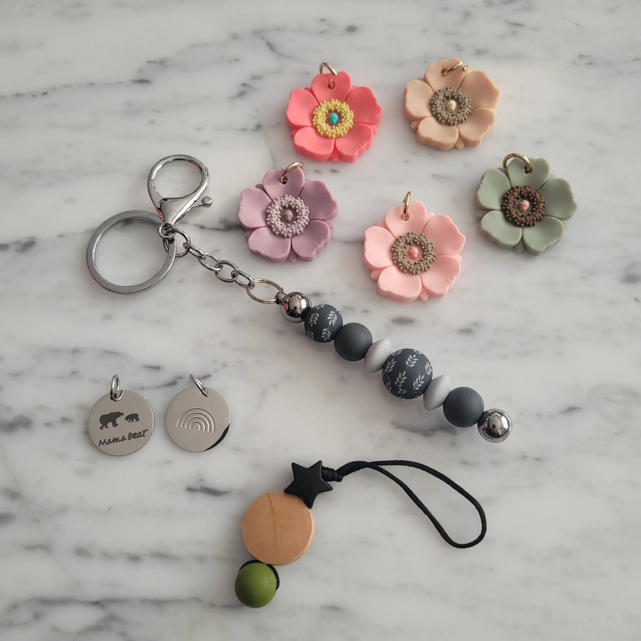 Comme Maman vous propose un porte-clés coloré et original, facile a trouvé dans le sac a main. Peux être accroché a une ganse avec sa pince. Personnalisez votre porte clé avec une breloque (optionnel) Sélectionnez celle en bois pour une inscription peint a la main, sur mesure.