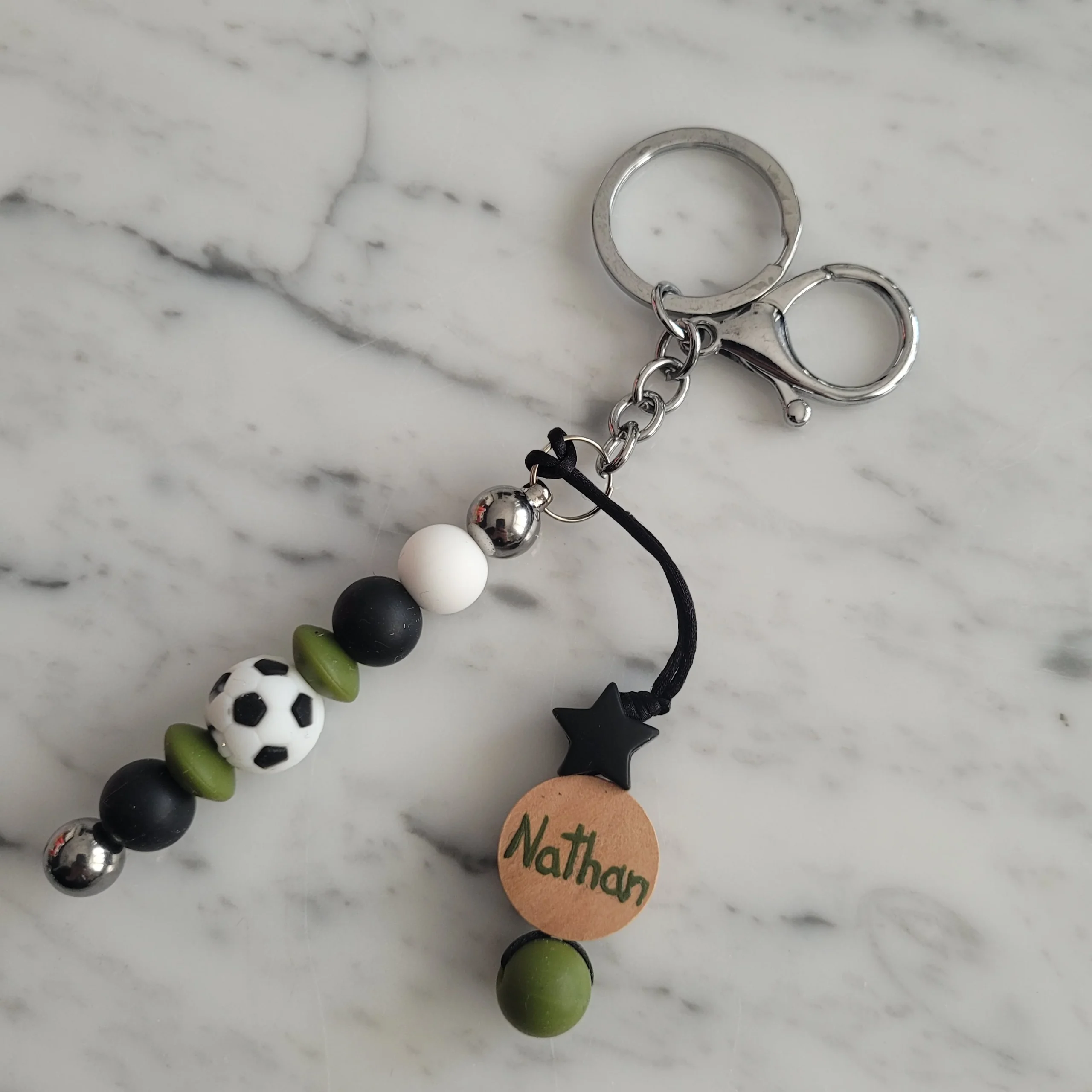 Personnalisez votre porte clé avec une breloque (optionnel) Sélectionnez celle en bois pour une inscription peint a la main, sur mesure.