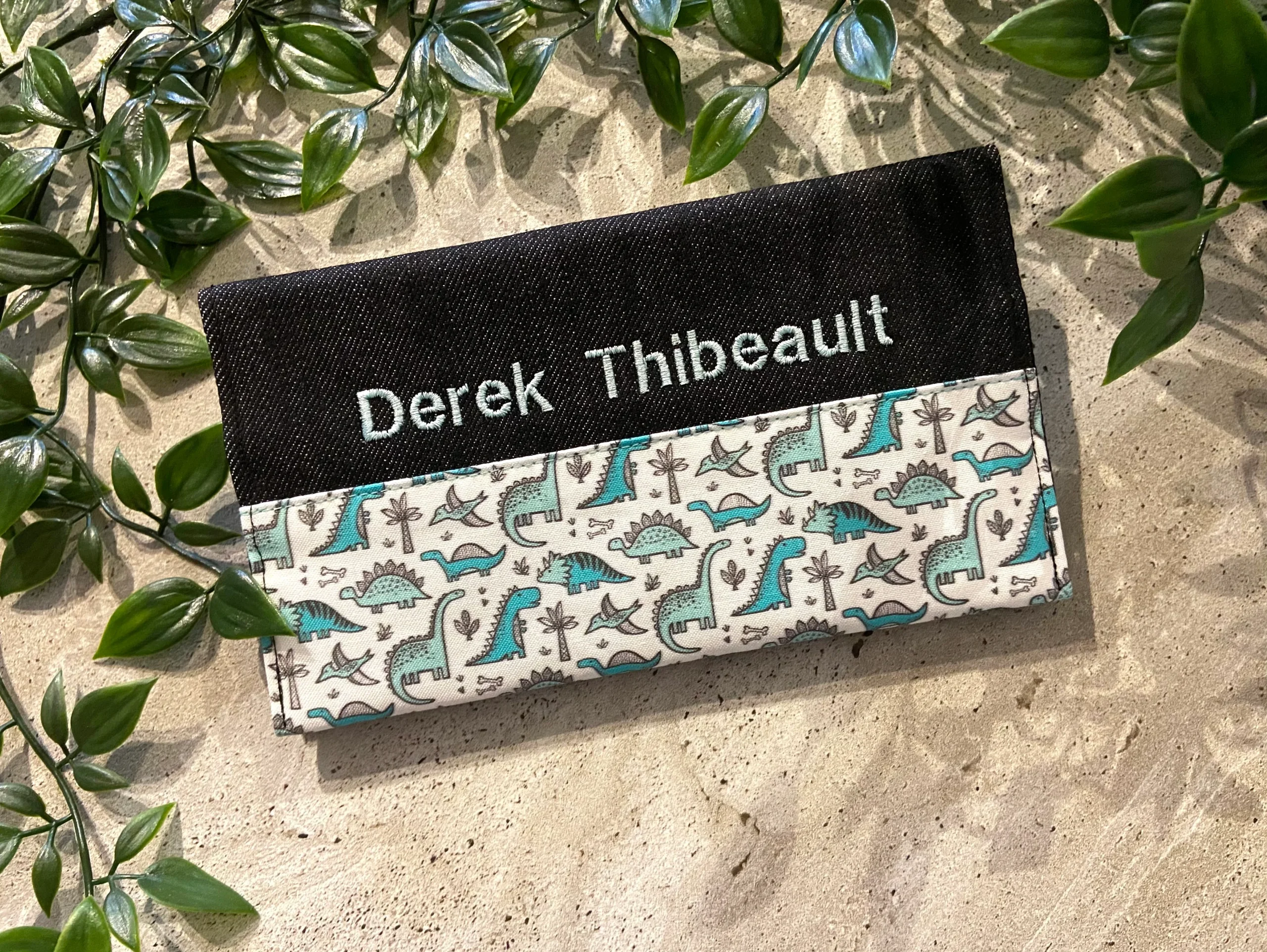 Protège carnet de santé personnalisé Lolikö Dino turquoise (motif : Caja_design)