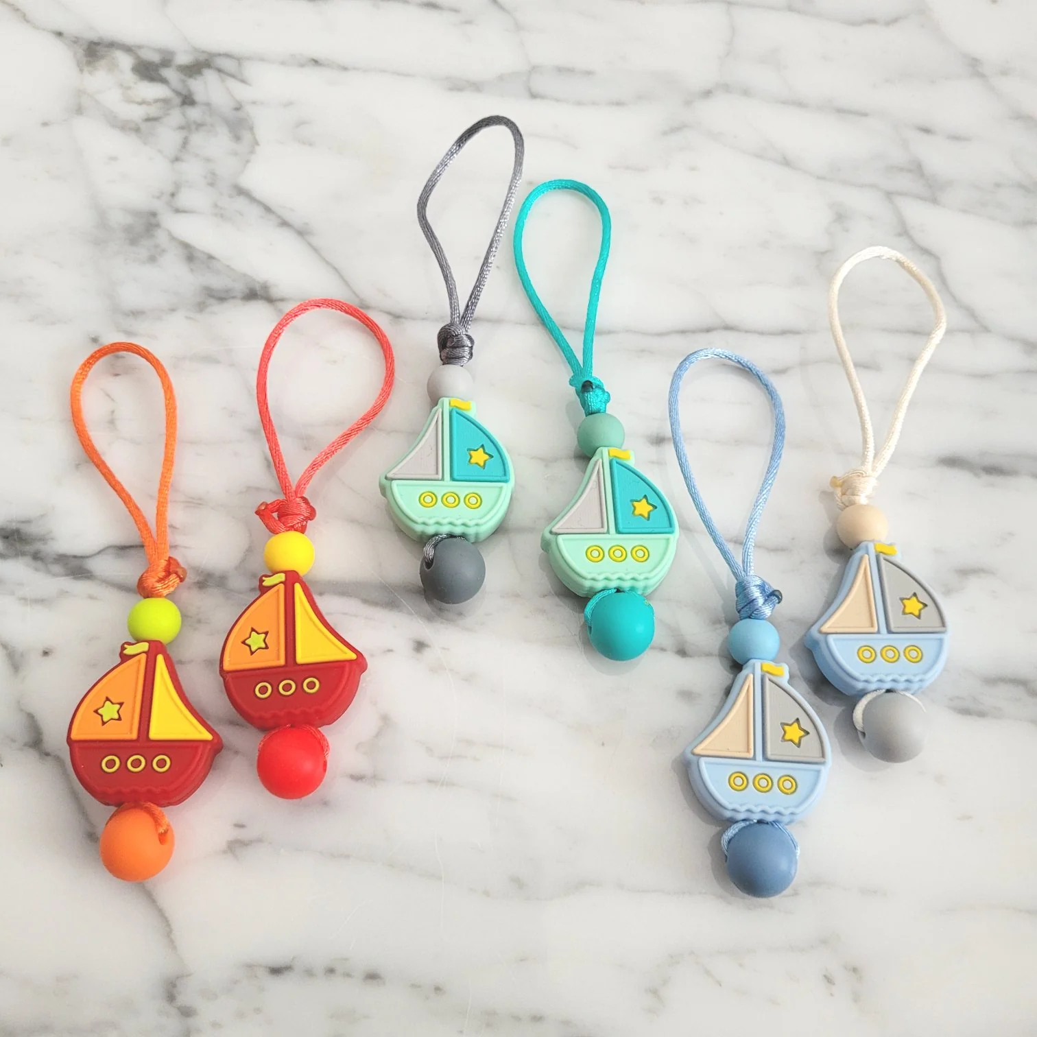 Tirette BATEAU, VOILIER pour fermeture éclair, zipette, aide l’autonomie des petit, accessoire sensoriel, bille de silicone