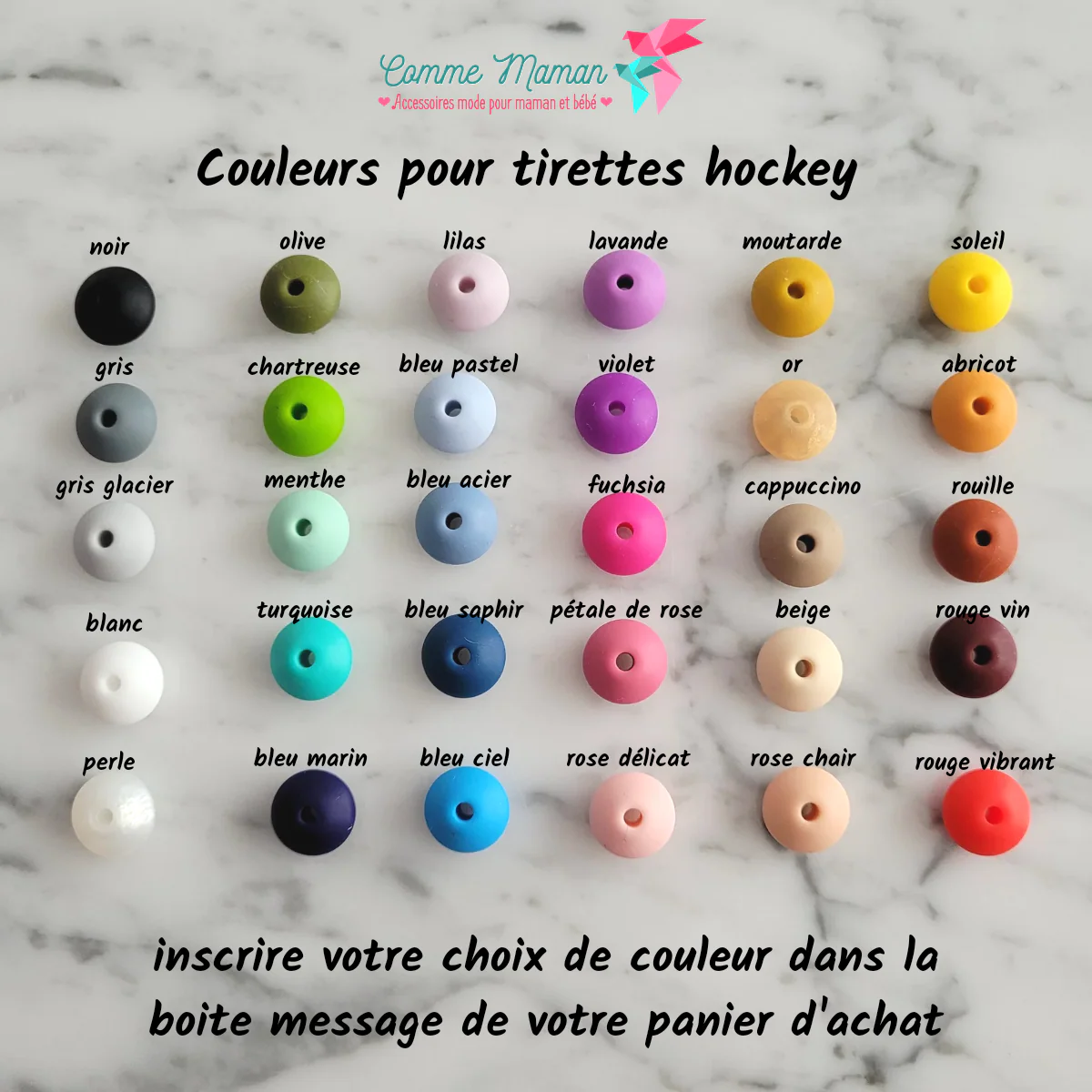 Tirette HOCKEY pour fermeture éclair, zipette, aide l’autonomie des petits, accessoire sensoriel, bille de silicone