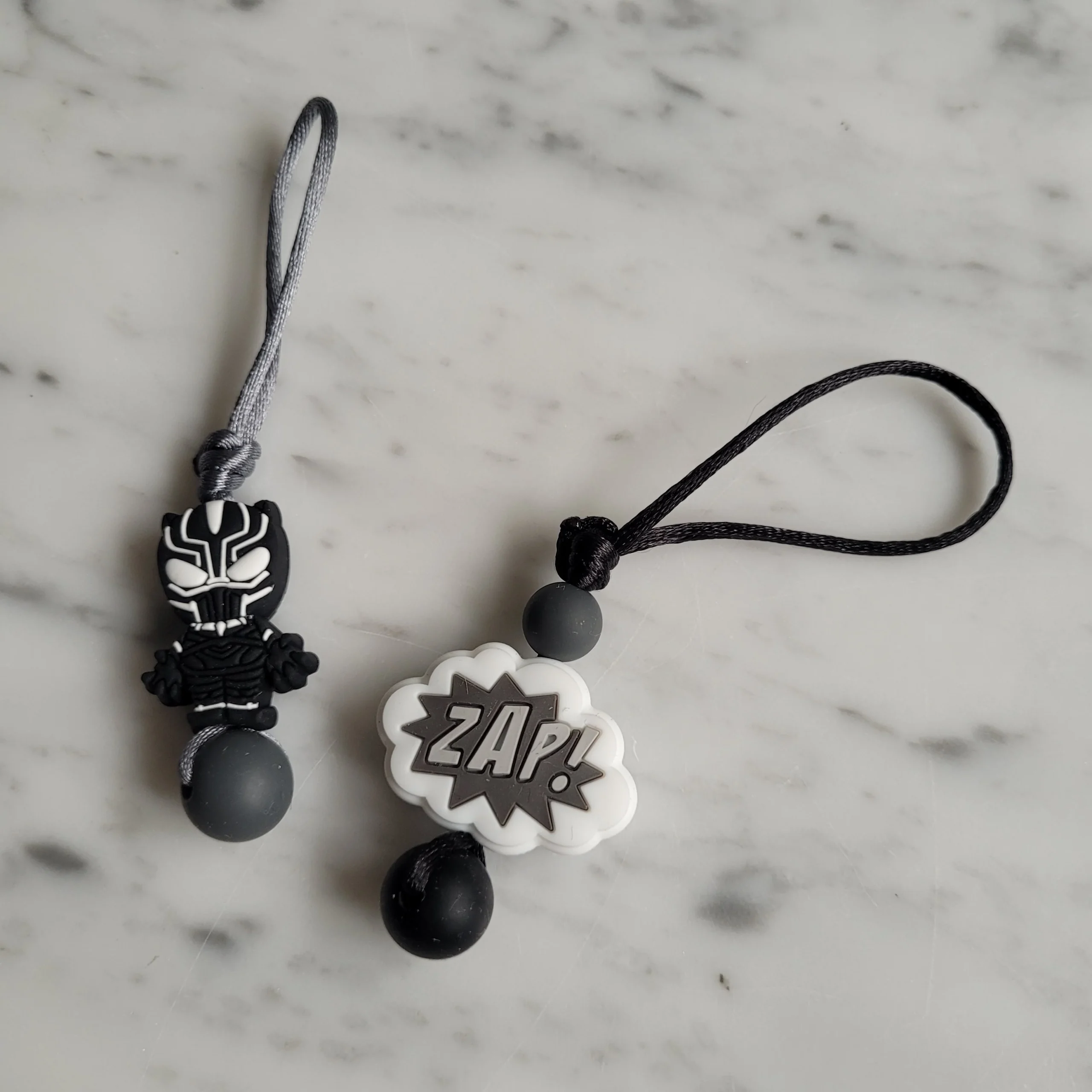 DUO de MINI tirettes ÉTOILES, pour fermeture éclair, ens. de 2 zipettes, aide-zip, identificateur de sac, accessoire sensoriel, bille de silicone