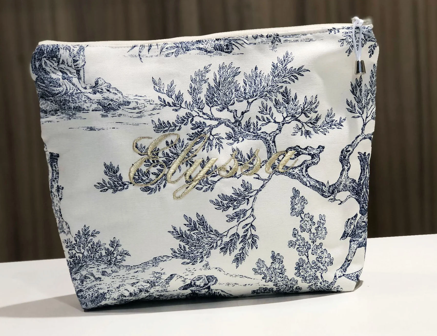 Trousse de toilette personnalisée Toile de jouy marine
