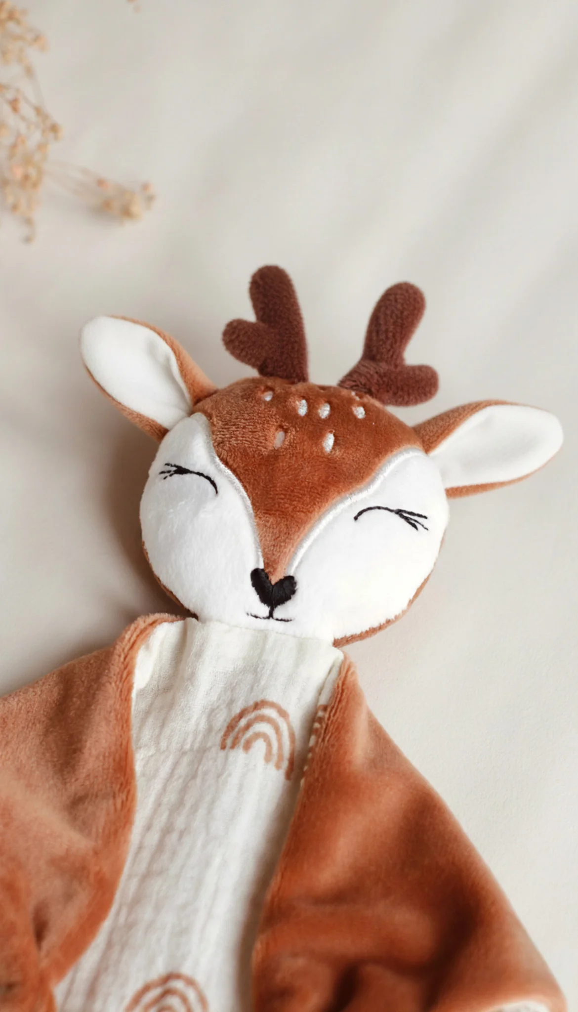 Alba la biche – Doudou Biche personnalisable – Minky Pêche